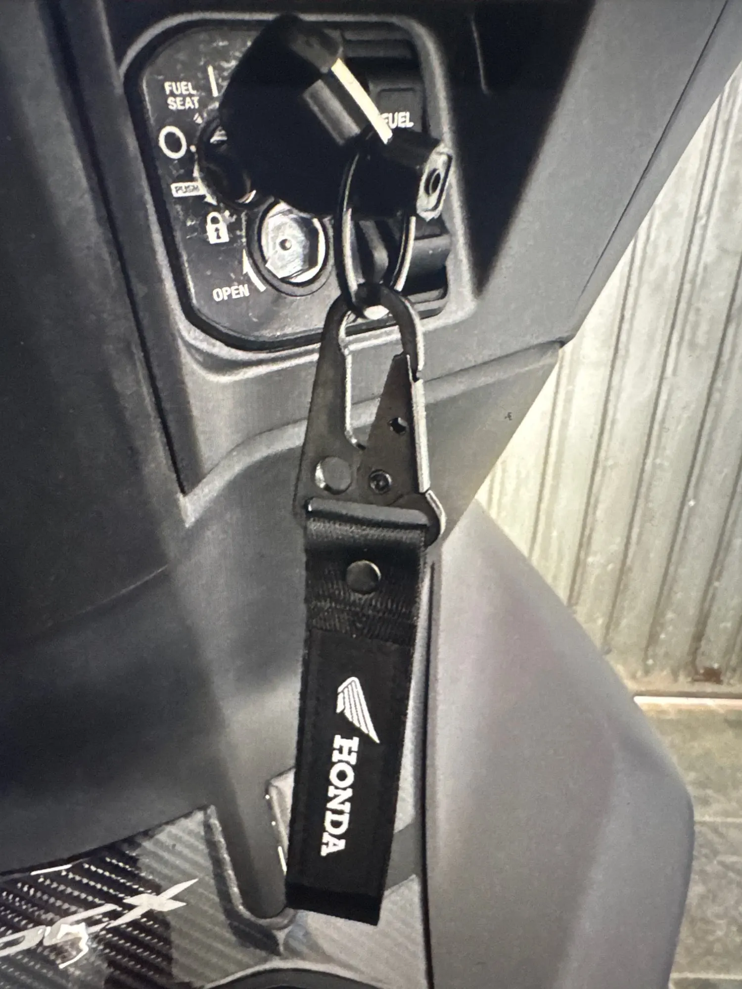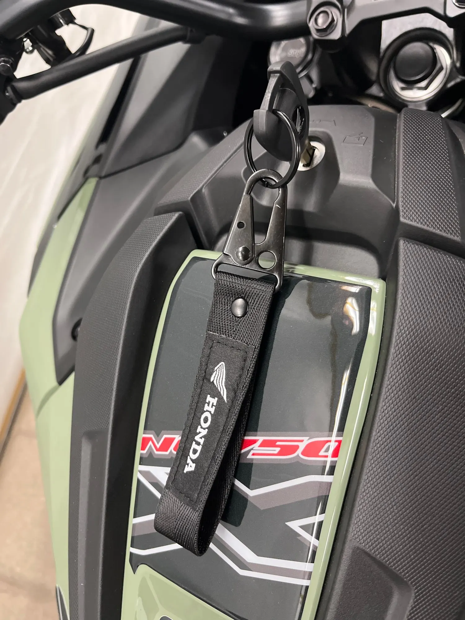This Honda keychain is built for riders who value subtle detail and everyday utility. The durable woven strap paired with a matte black metal clasp delivers a sleek, confident look that fits perfectly with any key setup.